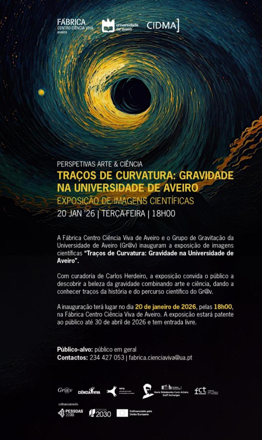 The Science and art exhibit "Traces of curvature" will reopen on January 20, 2026 at Fábrica, "Centro Ciência Viva", in Aveiro, and stay in exhibition for three months.